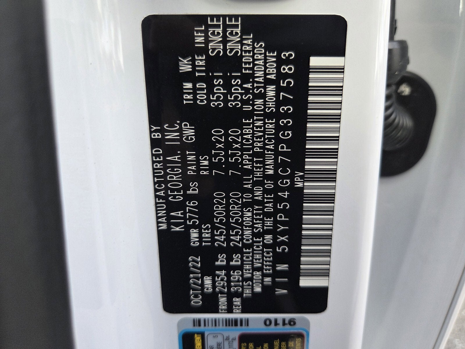- Front Tire Size: P245/50VR20